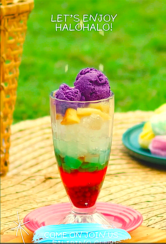 “Halo-halo” means “mix” in the local language and is a cold dessert made with a variety of ingredients from different countries.