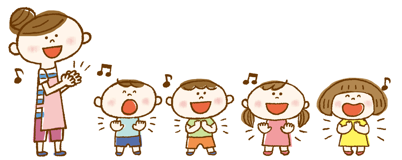 『ひげじいさん』の替え歌バージョンや、パパやママのひざに座って『バスにのって』を歌ったり、『たまごの中から』の♪まあるいたまごがパチンとわれて♪のフレーズに合わせて、さまざまな動物が次々と登場するなど、子どもたちだけでなく、パパやママの興味も引きつけるような、楽しい歌が紹介されました。