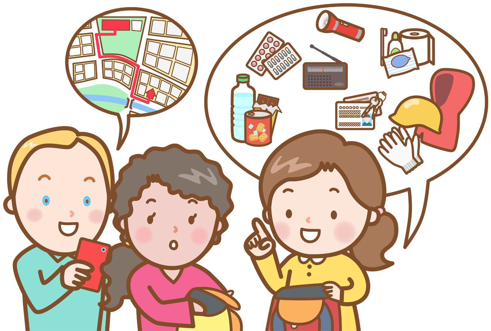 災害が起きた時、あなたはどうしますか?どこへ逃げますか?そんな質問から始まり、ハザードマップを見ながら、自分の自宅と避難場所を確認しました。