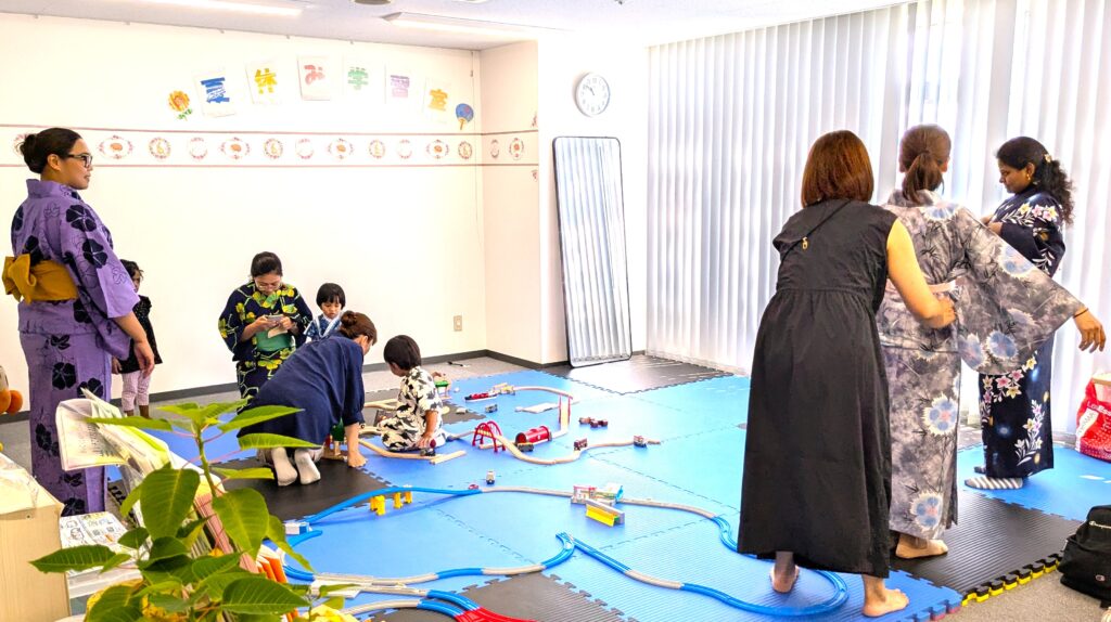今年も浴衣の季節がやってきました!日本の夏の風物詩、毎年外国人ママたちからも好評をいただいている浴衣の試着体験です。それぞれ選んだ浴衣は、その人らしさが出ていて、よく似合っていました。「これを着てこのまま花火大会に行きたい!」という声も。家族やお友だちに見せたいそうで、何枚も写真を撮っていました。