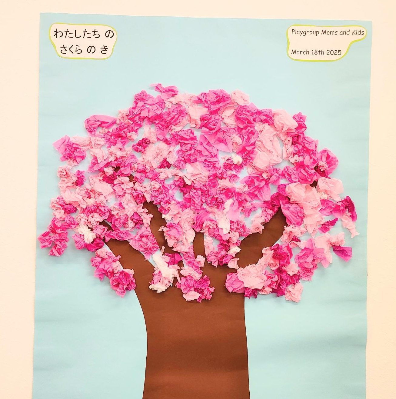 3月18日に開催したPlaygroupは、みんなで壁に桜の木をつくりました。