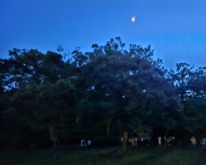 昨年6月10日(土)夜、私たちは久良岐公園に集まり、「久良岐自然観察会」の活動をされている清水美由紀さんを案内役にお迎えし、ホタル観賞会『久良岐公園でほたるを見よう!』を行いました。清水さんが描いた紙芝居を使って「ホタルの一生」について教えてもらい、その後約30分、実際に林の中を飛び交うホタルを観賞しました。暗闇の中を何十匹も飛び交うホタルの黄色い光はなんとも幻想的で、チカッと最初の光が見えたとたん、参加者からは「ウォー」という感動の歓声がわき起こりました。