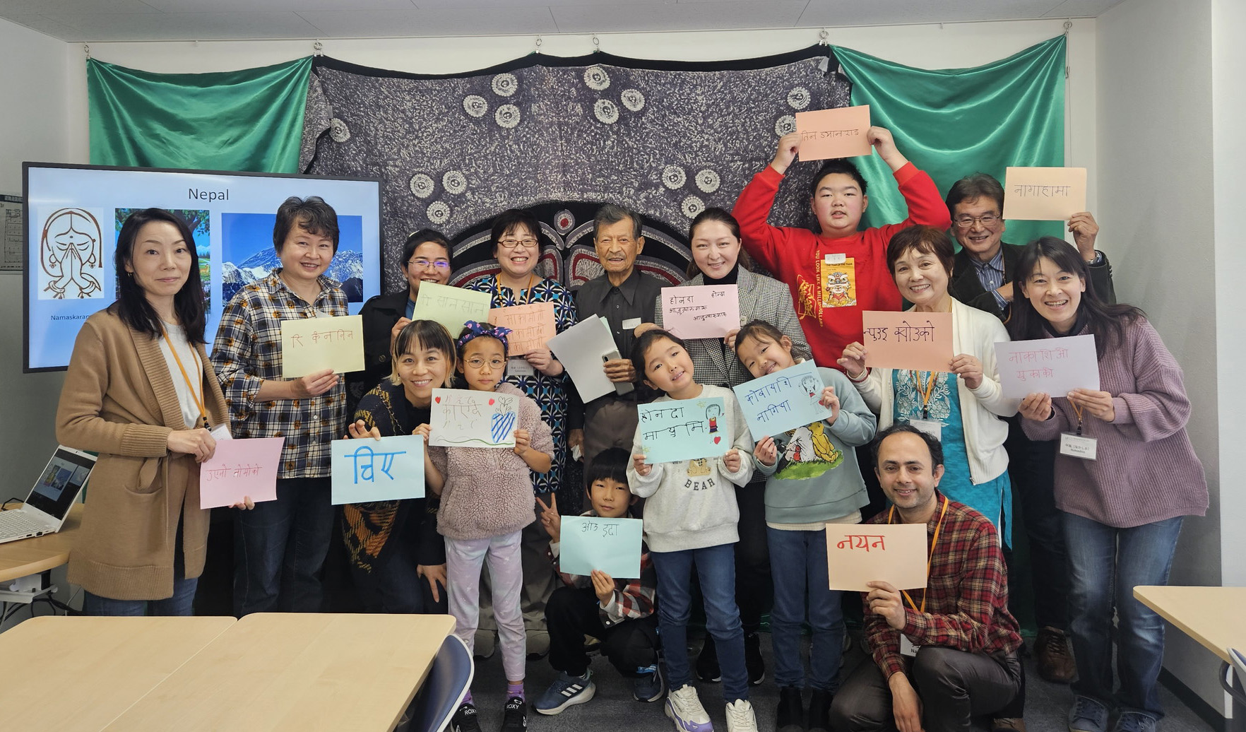 2024年1月6日(土)新しい年の最初のイベントは、磯子在住のネパール人ナエン・ジョティさんを講師に迎えて、ネパールの食事や文化を教えてもらいながら、最後は自分の名前をネパール語で書いてみるという催しでした。参加者は小学生から大人まで総勢13人。年初から楽しい笑い声が聞こえるイベントとなりました。